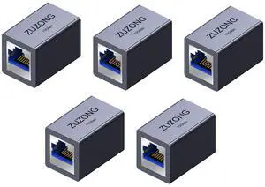ZUZONG 10GB RJ45 Coupler Ethernet Coupler, 10Gbps in Line Coupler for Cat8/Cat7/Cat6a/Cat6/Cat5e/Cat5 Ethernet Cable Extender Adapter for PC Router Modem PS5 Xbox Female to Female (5 PCS