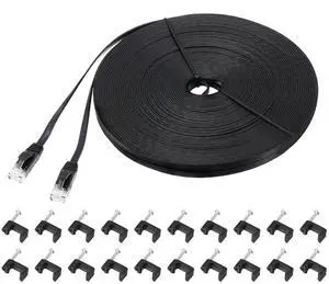 MECCANIXITY Cat 6 Ethernet Cable 98ft, 32AWG 250MHz Flat High Speed RJ45 Cat6 Internet Network Patch Cord with Clips for Computer, Gaming, Router, Modem, Black