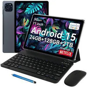 Android 15 Tablet 10 inch, 2025 Tablet with Keyboard, 24GB+256GB+2TB Expand, 2-in-1 Tablets with 8-Core, 5G WiFi, 8000mAh, BT5.0, GMS Certified, with Mouse, Case, Stylus, Split Screen(Black case)