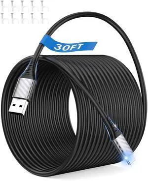 iMangoo USB A to USB C Cable 30ft Extra Long 10W 12W 18W 20W Charging Power Extension Cord USBA to USBC for Samsung Galaxy Note 20 Ultra for Tapo TP-Link Xiaomi Mi eufy Security CCTV Camera Black