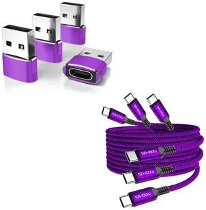 Elebase 3Pack USB C to Type C 100W Cable 3Pack 3.3/6.6/10ft and 4 Pack SB to USB C Adapter for MacBook Pro,iPhone 15,iPad 10 Air 4 5 Mini 6 6th,Samsung Galaxy Note S21 S22 S23,A72 A73,Tab S