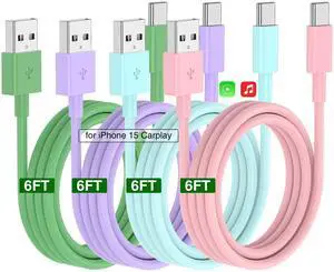 Car Carplay Cable for iPhone 17 16 15 Charger Cord,4 Pack 6FT USB A to USB C Cable for iPhone 17 Pro Max/16 Pro/15 Plus Charger,USB C Car Charger for Apple 17 Air/16 Pro Max/16e/15/iPad Pro-Black