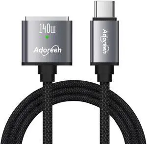 Adoreen 140W USB-C to Magnetic 3 Safe Fast-Charging Cable 6 Ft, PD 3.1, LED Indicator, Flexible Braided Apple Magsafe Charger Accessories for MacBook Pro & MacBook Air (13"/15" M2/M3, 2022-2023),Black