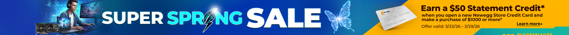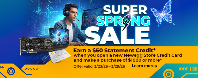 *Subject to credit approval. In order to qualify for this offer, you must open a new Newegg Store Credit Card account and use it to make a qualifying first purchase of $1,000 or more (minus any returns or adjustments during the promotional period) between March 23, 2026 - March 29, 2026. For accounts that qualify, a $50 statement credit will post to your account within 90 days from end of offer period. Only one $50 statement credit can be earned per account. Account must remain open, be in good standing and not become delinquent at the time the credit is posted to the account. Offer is valid for newly opened Newegg Store Credit Card accounts only. Statement credit cannot be used to satisfy the required monthly payment on your Newegg Store Credit Card credit card account and may not be redeemed for cash or cash equivalent.