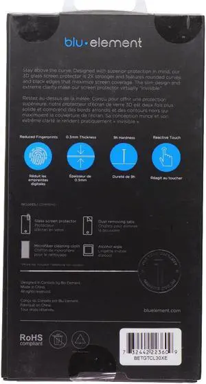 Features: Curved to perfection for edge to edge protection. Designed with each device screen's curvature in mind, Blu Element's 3D Curved Tempered Glass has high clarity and easy bubble release for a peak user experience. A precise fit, full screen coverage that prevents dust from entering and anti-fingerprint coating will keep your screen continuously looking clean.