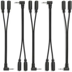 ExcelValley - 5-Pack - Right Angle Mono Splitter Y Patch Cables - TS 3.5mm 1/8" Eurorack Synth Synthesizer [Black]