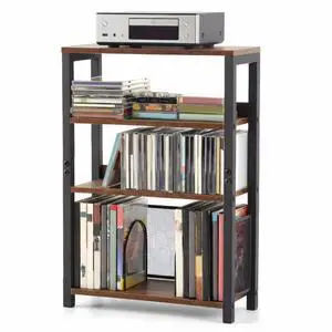CroBlissful 4-tier Small Wooden Cd Storage Shelf - Vertical Media Organizer for Cds, Dvds, Books & Games, Compact Display Rack for Home Living Room & Office