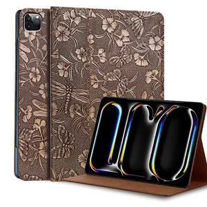 Gexmil Genuine Leather Case for iPad Pro 13 Inch (M5/M4) 2025/2024 with Adjustable Stand,Protective Shockproof Premium Leather Smart Folio Cover Auto Sleep/Wake Anti-Slip, Butterfly Grey