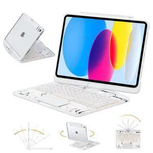 SCKIQUEN 2026 Latest Keyboard Case for iPad 11th Gen 11 Inch (A16, 2025) & iPad 10th Gen 10.9 Inch (2022), Wireless Bluetooth Keyboard with Multi-Touch Trackpad & Pencil Holder & 360 Rotation, White