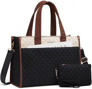 LOVEVOOK Laptop Tote Bag for Women,Canvas Work Tote Bag for Women with Clutch Purse,17.3 Inch Computer Briefcase Bag,Professional Teacher Business Office Bag,Lightweight Shoulder Travel