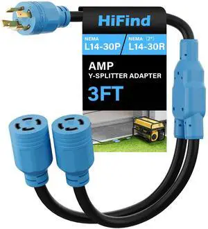 4 Prong 30 Amp Generator Y Splitter Locking Adapter Cord 3 Ft, NEMA L14-30P to (2) L14-30R Power Converter Plug, 10/3 AWG SJTW Outdoor, 125/250V for Manual Transfer Switch, Outages, RV Camper,ETL-Blue