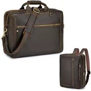 COSCOOA Large Full Grain Leather Briefcase Convertible Backpack For Men Business Travel Case Messenger Bag Fits 17.3" Laptop,Work Business Travel Daypack