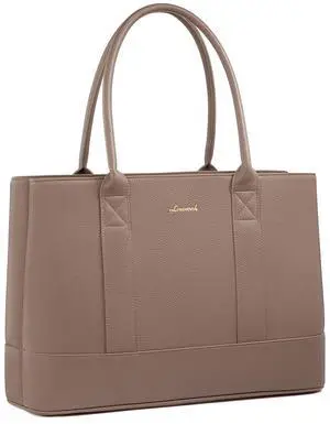 IGOLUMON Laptop Bag for Women 15.6 inch Waterproof Tote Leather Work purse Office Travel Handbag Shoulder Khaki