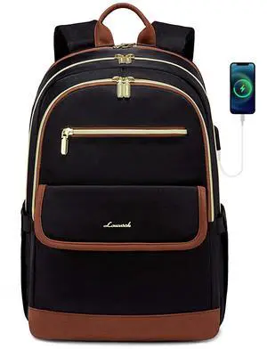 LOVEVOOK Laptop Backpack for Women,15.6 Inch Fashion Travel Backpack,Large Capacity Backpack Purse with USB,Water-resistant fits College Work Business Travel Black & Brown
