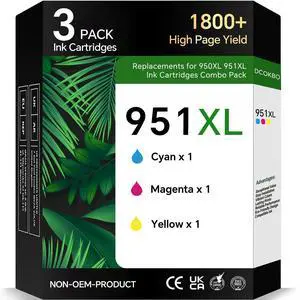951XL Ink Cartridges Combo Pack Compatible Cartridges for HP 951Color Printer Ink, 3-Pack Replacement for HP 951 XL Work with OfficeJet Pro 8100 8600 8610 8620 8100 8630 251DW( Cyan, Magenta, Yellow)
