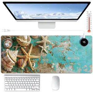 Heated Desk Pad Large Mouse Pad 31.5 x 13 inch with 3 Levels Heating & Auto Shut-Off Warm Mouse pad PU Leather Computer Mousepad for Home Office Work - Green Boards and Shells