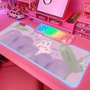 JMIYAV Pink RGB Gaming Mouse Pad 31.5x12 Inch PC XL Large Extended Glowing Led Light Up Desk Pad Non-Slip Rubber Base Computer Cute Mousepad Mat Desk Accessories Gaming Setup 57-1