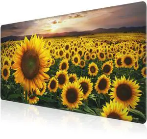 Mouse Pad, Large Blooming Sunflowers Desk Mat, Extended Non-Slip Gaming Keyboard Mousepad Desk Pad, Thick Stitched Edges Waterproof Mouse Mat 31.5"x15.7" (Midsummer Sunflowers at Sunset)