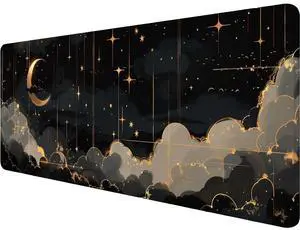 Black Gold Celestial Desk Mat - Extended Gaming Mouse Pad with Stitched Edge Non-Slip Base - 31.5"x11.8"