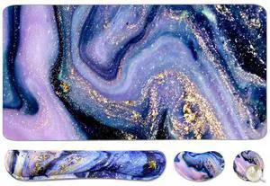 Keyboard Mouse Pad Set, Extended Mouse Pad+Keyboard Wrist Rest Support, Memory Foam Ergonomic Easy Typing, 3Pcs (35.415.7 in) Desk Pad Set for Home Office Study Game-Purple Marble