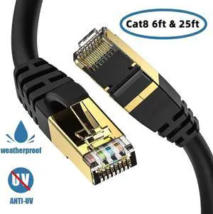 Cat 8 Ethernet Cable, (Cat8 6ft & Cat8 25ft) Outdoor&Indoor, Burial High Speed 26AWG Cat8 LAN Network Cable 40Gbps, 2000Mhz with Gold Plated RJ45 Connector, Weatherproof for Router/Gaming/Xbox/IP
