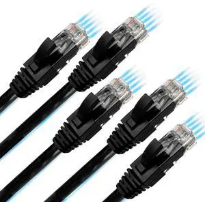 W-NECTOUN Cat 6 Ethernet Cables (5-Pack), 3ft, Snagless, RJ45, Black