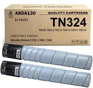 TN324 Black Toner Cartridge A8DA130 Compatible with Konica Minolta TN324K TN326K TN512K TN513K TN514K TN515K TN516K Black Toner Replacement for Konica Minolta Bizhub C258 C308 C368 Printer(2-Pack)