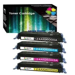 Green Toner Supply (Pack of 4) Compatible Replacement for HP 124A Q6000A Q6001A Q6002A Q6003A Toner Cartridge Work for HP Color Laser-Jet 1600 2600n 2605 2605dn CM1015 CM1017 Printer (BCYM)