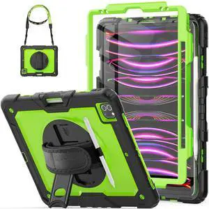 HXCASEAC Case for iPad Pro 12.9 Case 6th 5th 4th 3rd Generation with Pencil Holder/Hand Strap/Screen Protector/Wireless Charge Attachment, Heavy Duty Protective 12.9-inch 2022/2021/2020/2018 - Green