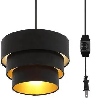 Bobobigo Plug in Pendant Light, Hanging Light Fabric Shade, Pendant Light Fixture for Bedroom, Kitchen, Living Room, Dining Table Buld not Include (Black)