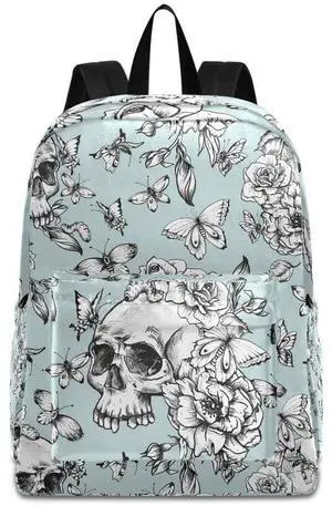 MNSRUU Student Backpack for School Vintage Goth Skull Laptop Backpack Aesthetic School Bookbags Casual Daypack Backpack Fits 15.6 Inch Laptop