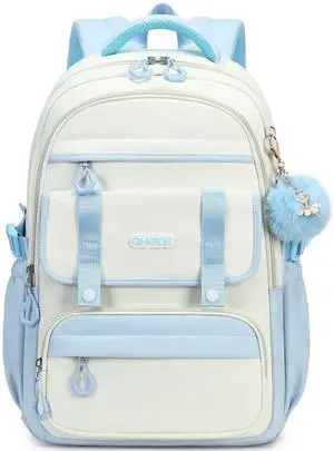 School Backpack for Girls, Laptop Backpack 15.6 Inch Kids Elementary Middle High School Bag Anti Theft Cute College Bookbags for Teens Girls Women Students Casual Travel Daypack,Blue Beige