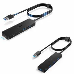 Aceele USB Hub 3.0 Splitter with 2 USB-C and 2 USB-A, 4 Ports Ultra-Slim Multiport Expander Adapter with 4ft Extension Long Cable Cord, Bundle of USB Hub 3.0 Splitter with 4 USB-A Ports