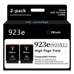 PFKink 923e 923xl Black Ink Cartridges Combo Pack with Latest Chip Replacement for HP Ink 923e 923 XL Black Ink for OfficeJet 8120e 8122e 8124e Pro 8135e 8138e 8139e 8130e 8132e(2Black)