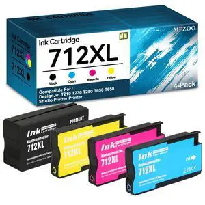 712 712XL Ink Cartridge High Yield Compatible for HP 712XL 712 Ink Combo Pack Replacement for HP DesignJet T650 T630 T230 T210 Studio Plotter Printer(4 Pack, 80-ml Black + 29-ml Cyan/Magenta/Yellow)
