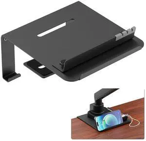 GECKOSTROLL 2-Tier Metal Computer Monitor Stand & Laptop Desk Shelf, 21.6 Inches, 22W Charging, 2 USB 3.0, 1 USB 2.0, Heavy Duty, Black, Metal