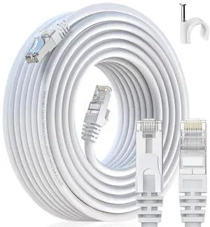 LEKVKM Cat 6 Ethernet Cable 100 ft High Speed RJ45 Internet Cable for Outdoor & Indoor Support CAT6 Network Solid Slim White Flat Computer LAN for PC