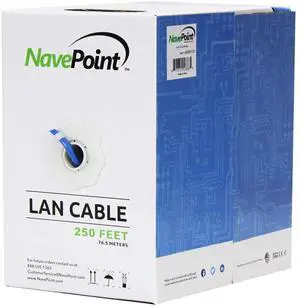 NavePoint CAT6 Ethernet Cable - CCA Bulk CAT6 Cable 250ft Ethernet Cable, 550MHz, 23AWG 4 Pair, Unshielded Twisted Pair (UTP), Solid Blue