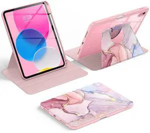 Soke Rotating Case for iPad (A16) 11th Generation 2025, iPad 10th Gen 2022 with Pencil Holder, [Shockproof + Auto Sleep/Wake] 360 Degree Rotation Clear Back for iPad 11"/10.9", Dreamy Marble