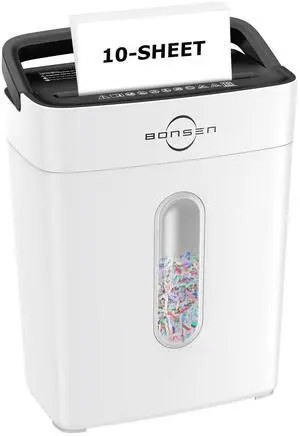 Bonsen 10-Sheet Cross Cut Paper Shredder for Home Office, P-4, Portable Handle, 4 Gallons Bin, Paper and Credit Card Shredder, White (S3201-W New Version)