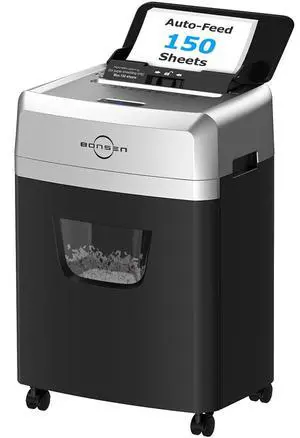 BONSEN 150-Sheet Autofeed Paper Shredder for Office, 60 Mins Heavy Duty Micro-Cut Shredders for Home Office Use, P-4 High Security Commercial Document Shredder with 6 Gal Large Capacity Bin (S3114)