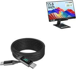 BoxWave Cable Compatible with Ingnok FHD IPS Portable Monitor (15.6 in) - PowerDisplay PD Cable (6ft) - USB-C to USB-C (100W), LED Wattage Info Extra Long Braided Nylon - Jet Black
