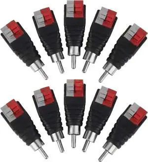 RCA Male Plug to AV Screw Terminal Audio/Video Connector 10-Pack RCA Plugs for Speaker Wire Solderless Phono RCA Adapter