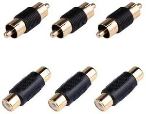 RCA Coupler 6 Pack Female Adapter Audio Video Cable Extension for Amplifier Subwoofer