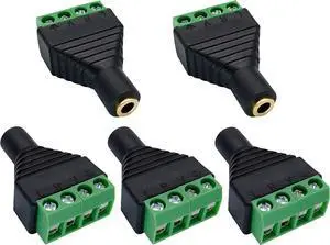4 Pole 3.5mm Screw Terminal Stereo TRRS Audio Female to AV 4 Pin Screw Terminal Double Track Headphone Balun Solderless Converter Adapter (5 Pack)