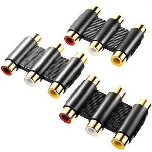 RCA Female to Female Coupler Gold Plated 3-RCA Female to Female Jack Coupler Adapter White Red Yellow - 3 Pack