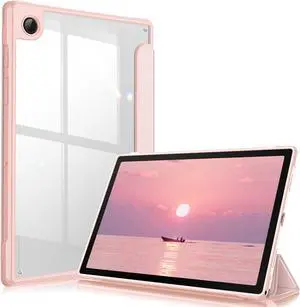Fintie Hybrid Slim Case for Galaxy Tab A8 10.5 Inch 2022 Model (SM-X200/X205/X207) Shockproof Cover with Clear Transparent Back Shell Auto Wake/Sleep Rose Gold