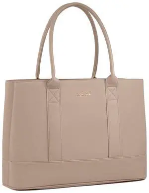 LOVEVOOK Laptop Bag for Women, 15.6 inch Computer Work Tote Bag, Waterproof Leather Shoulder Bag, Large Capacity Business Handbag, Office Briefcase for Gift, Travel, Teacher, Nude