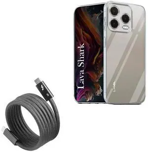 BoxWave Cable Compatible with Lava Shark 4G - SnapWrap Thunderbolt 5.0 Cable (5ft 240W), Magnetic Self-Coiling Nylon Braided Retractable - Jet Black
