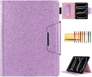 Glitter Case for iPad Pro 13-inch (M4) 2024 7th Generation, Techcircle Folio Stand Smooth Bling PU Leather Soft TPU Back Smart Cover with Pencil Holder & Card Pocket, Auto Sleep/Wake, Shiny Purple